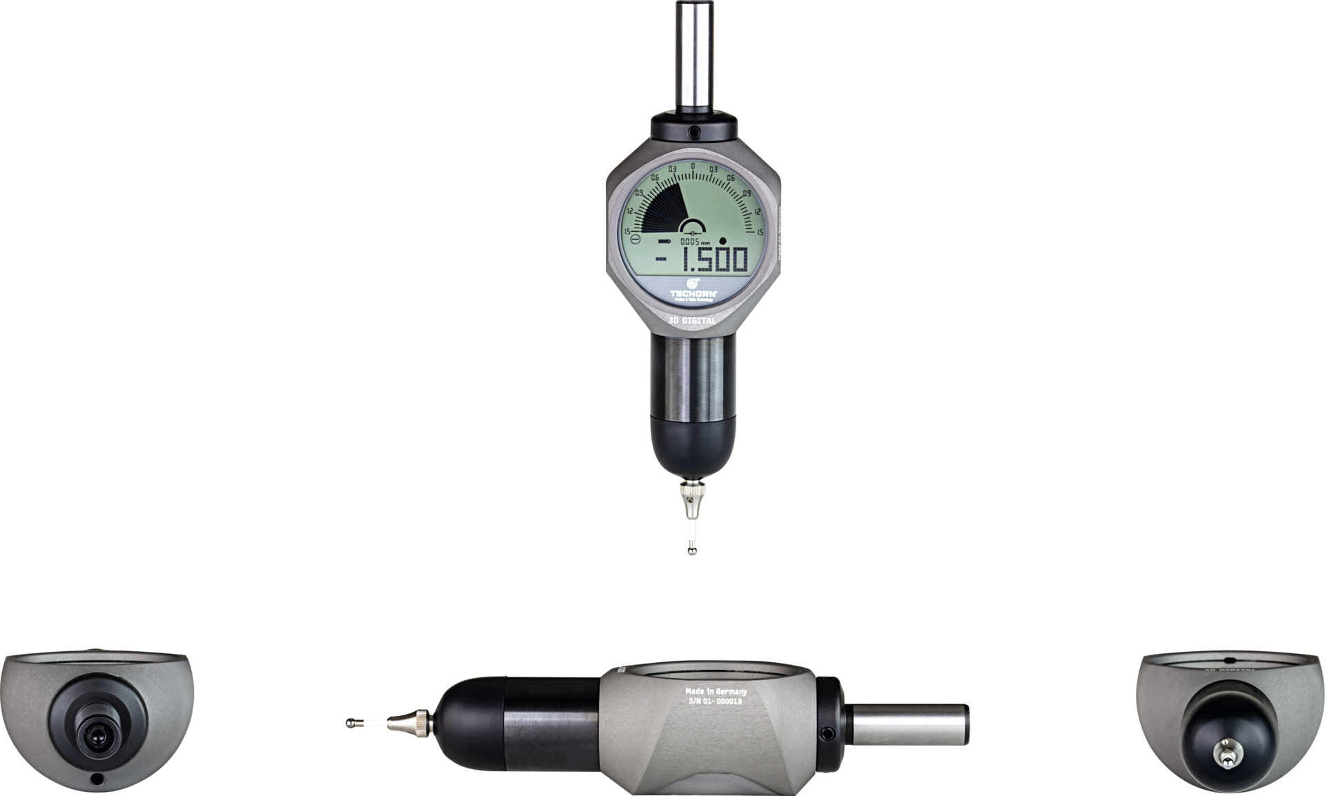 lange und kurze Tasteinsätze einsetzbar, die ohne Werkzeug gewechselt werden können, nach dem Wechsel eines Tasteinsatzes ist keine Neukalibrierung des 3D-Tasters erforderlich