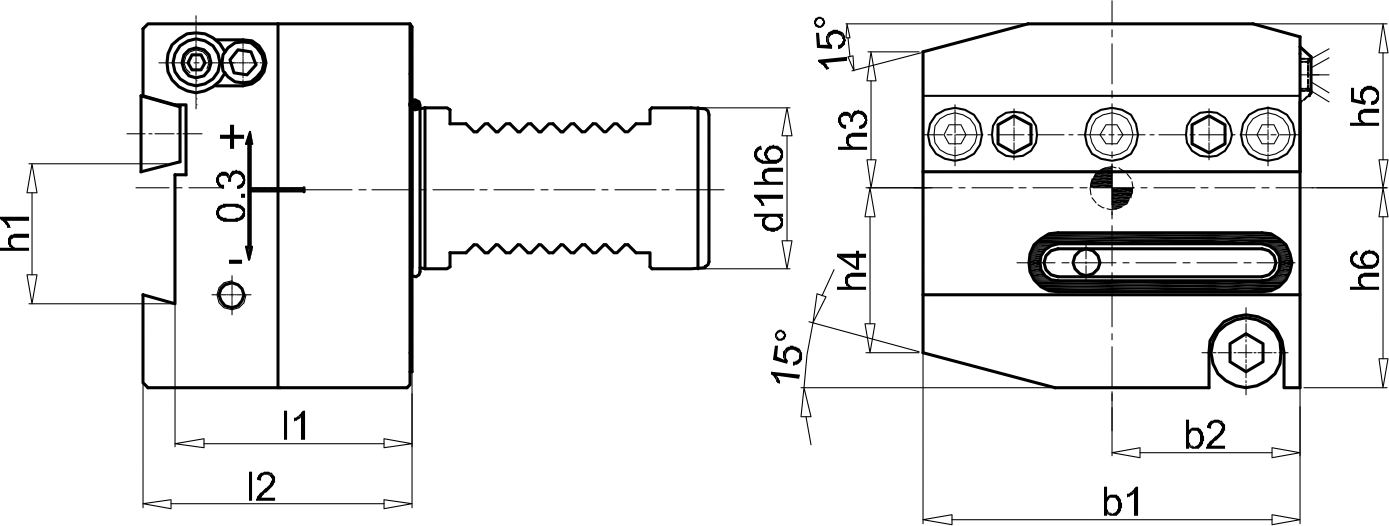 mit Doppelverzahnung, höhenverstellbar +/- 0,3 mm, Anschluss für externe Kühlung G1/8"