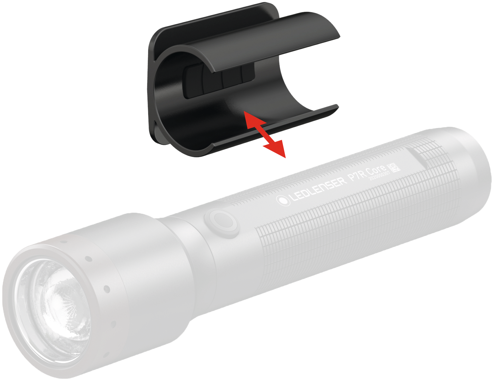ermöglicht die Anbindung von Taschenlampe an die Halterungen (Art.-Nr. 876080, 876081, 876084) und Gürtelclip (Art.-Nr. 876082), Adapter wird auf den Schaft der Lampe geclippt