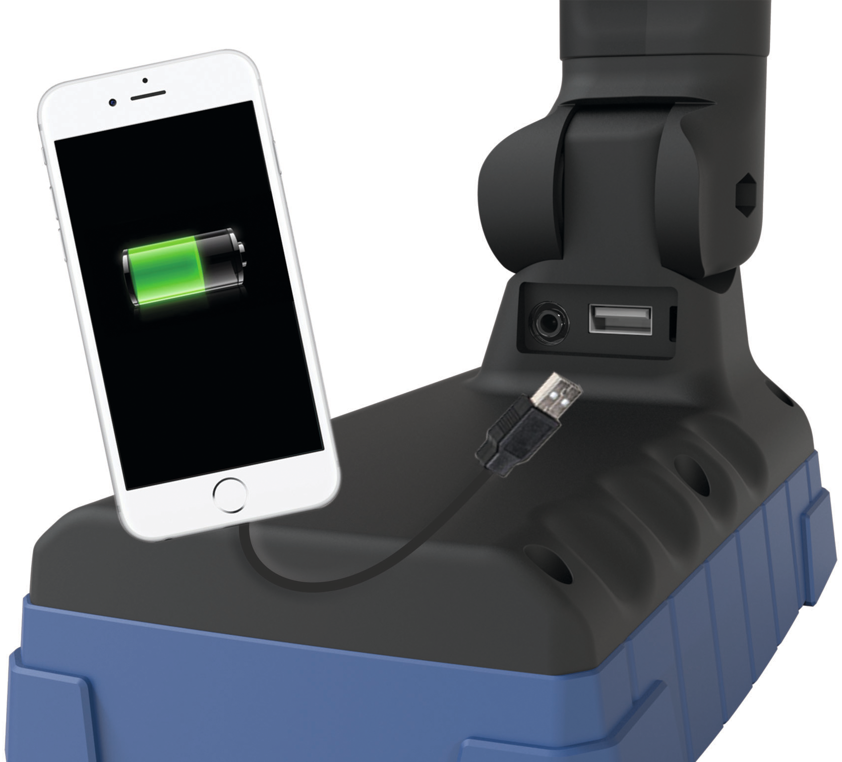 bruchfestes Gehäuse und robuster Gummioberfläche, starker Magnet am flexiblem Handgriff, mit eingebauter USB-Powerbank zum Aufladen von mobilen Einheiten, Dimmfunktion in 2 Stufen (100 % und 50 %)