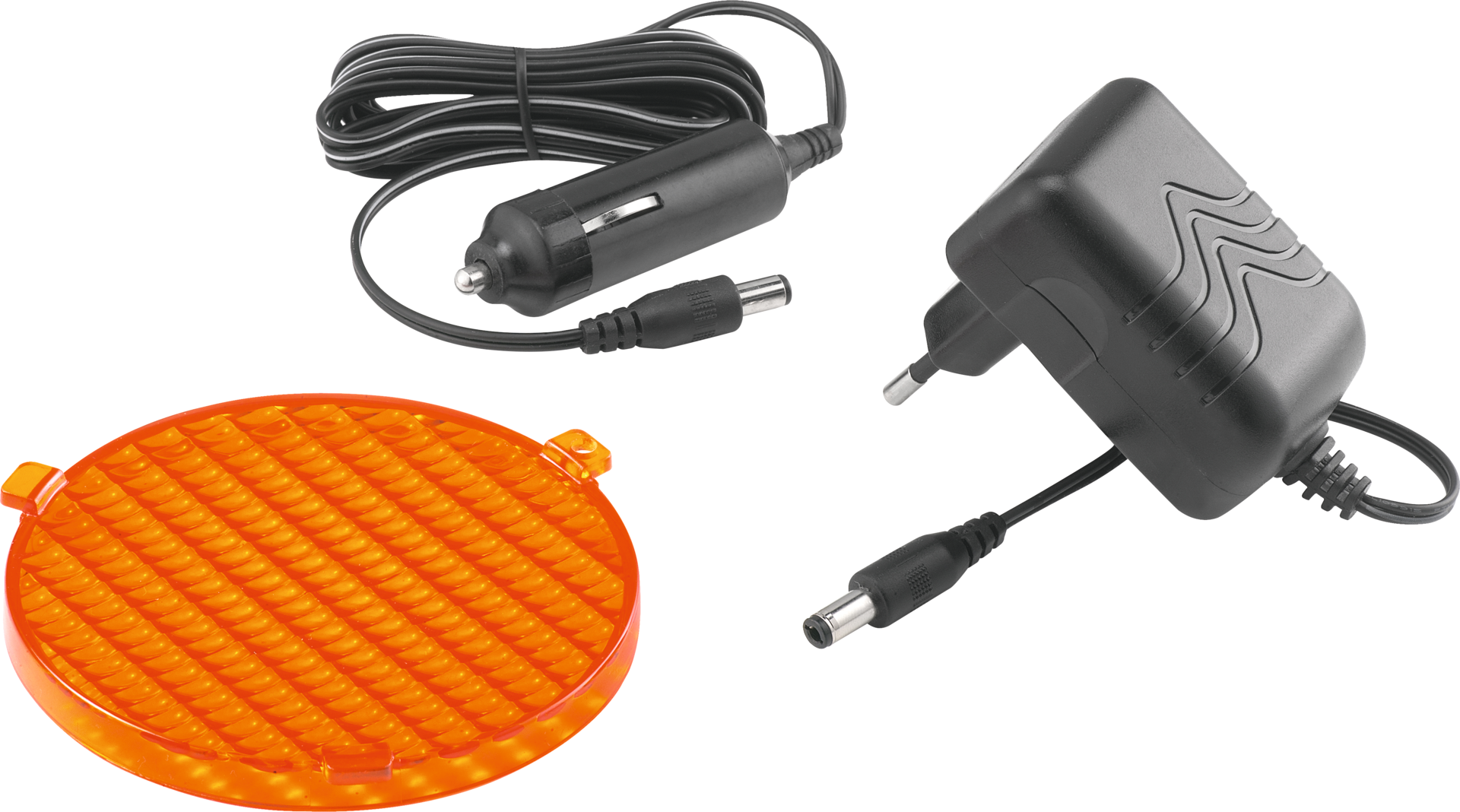 LED-Akku-Handscheinwerfer, Blei-Akku 6 V/4,5 Ah, Lade-/Wandhalterung, Streuscheibe orange, Ladekabel 230 V und 12 V