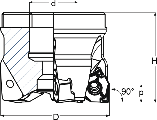 Aufsteck-Eckfräser "EylTrigo" Z5 IK für WSP WNEU 0806.. D50mm