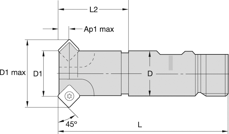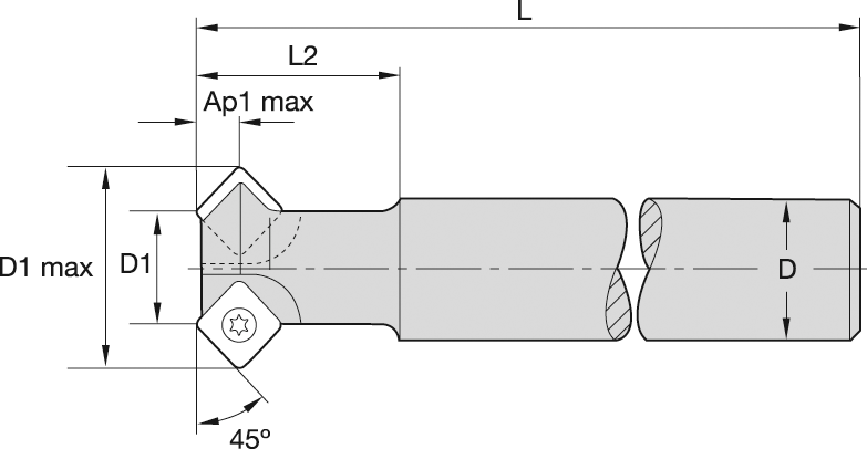 Aufsteck-Fasfräser "M25" 45° Z2 Zylinderschaft lang für WSP SD..0903.. D16mm