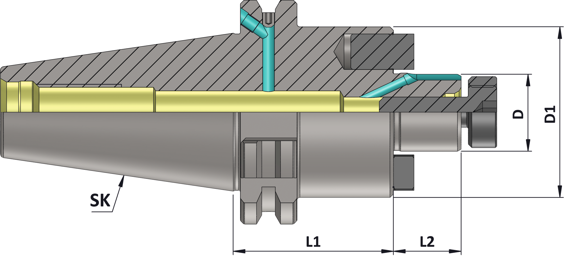 Durch Verwendung der Fräseranzugschraube (239958...) kann die Aufnahme auf direkte Innenkühlung durch das Trägerwerkzeug umgerüstet werden.