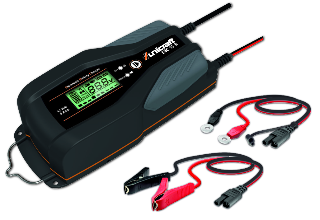 ergonomisches und übersichtliches Design, Kontrolle aller Phasen des automatisch gesteuerten Ladezyklus und des Erhaltungsladebetriebs über beleuchtetes Display, Winter-Modus (Laden der Batterie auch bei Temperaturen unter 0 °C), Stützladebetrieb (Memory Saver), automatische Erkennung der Batteriespannung, Sicherung gegen Kurzschluss der Ladekabel, Signal bei falscher Polung/Spannung oder Störung