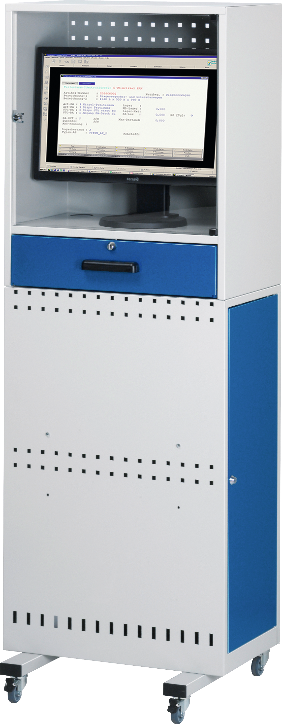 Computer-Säule RAL7035/5010 B600 x T350 x H1650mm stationär