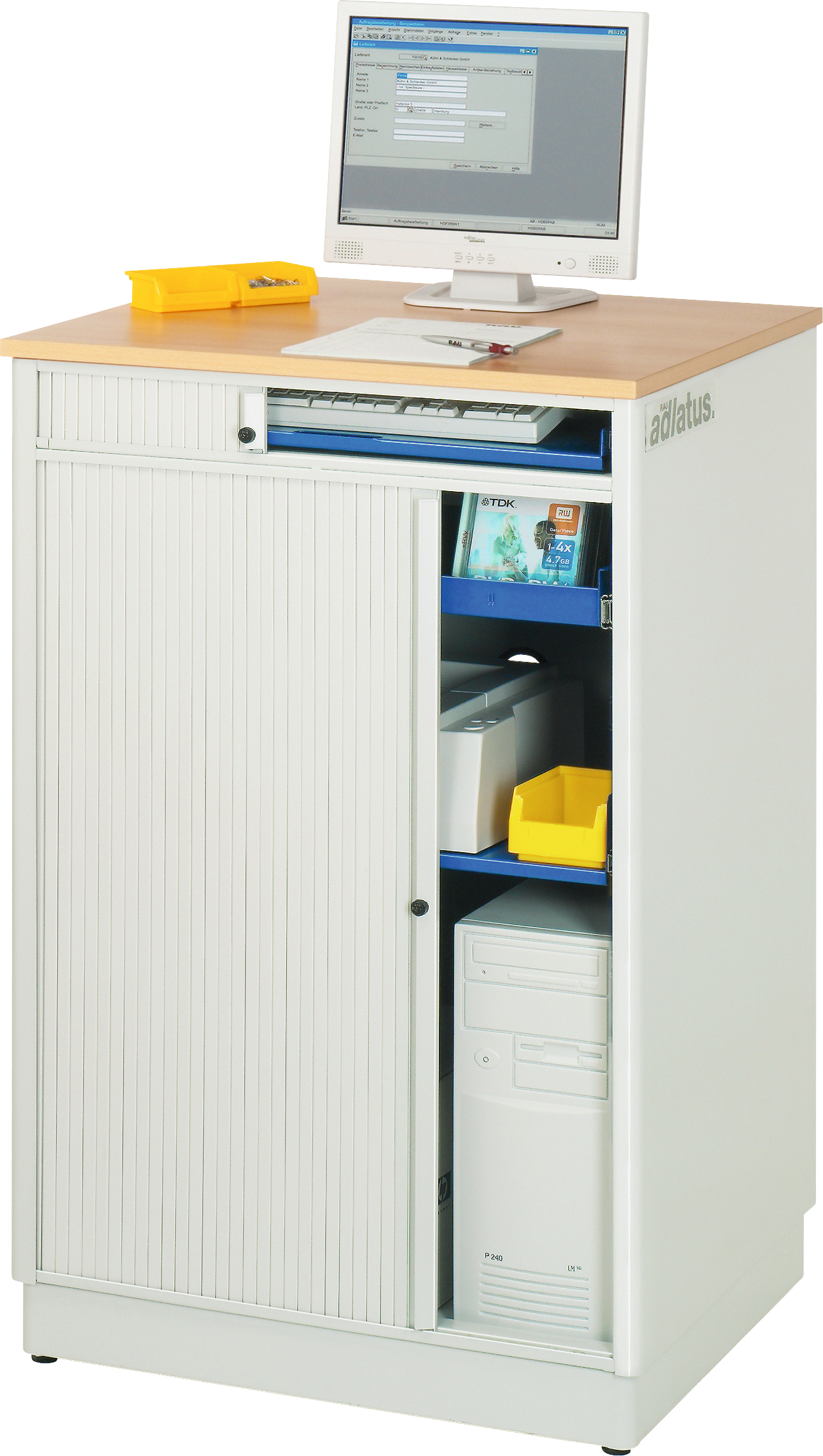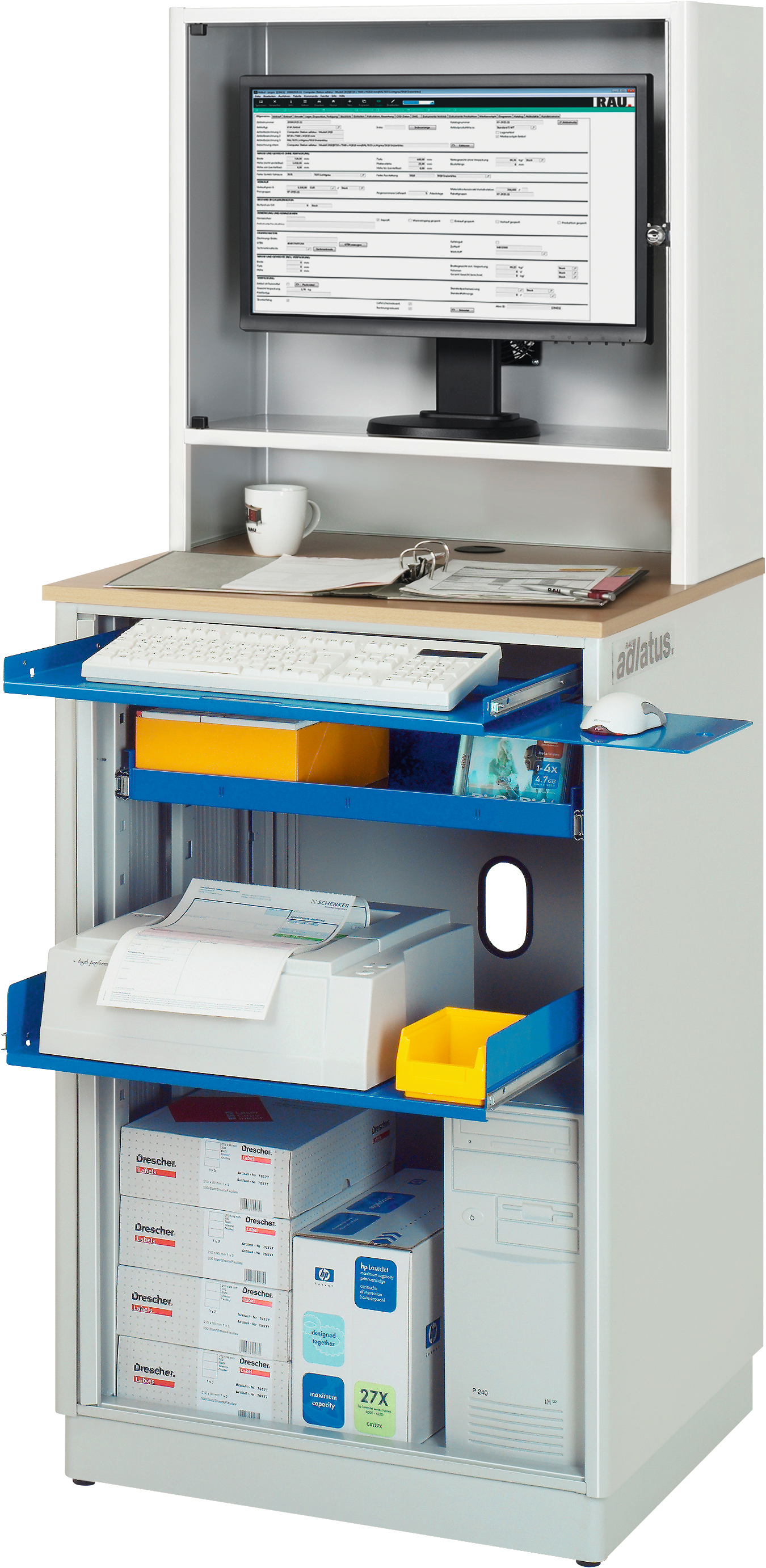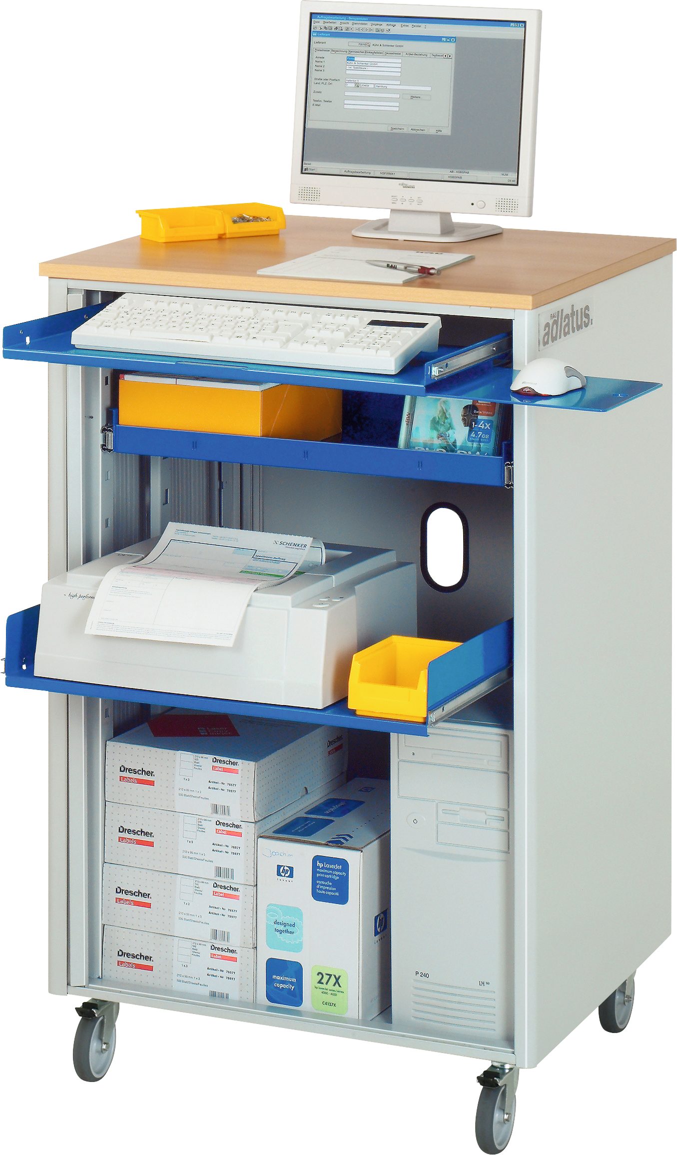 Computer-Station Mini RAL7035/5010 B720 x T660 x H1100mm mobil