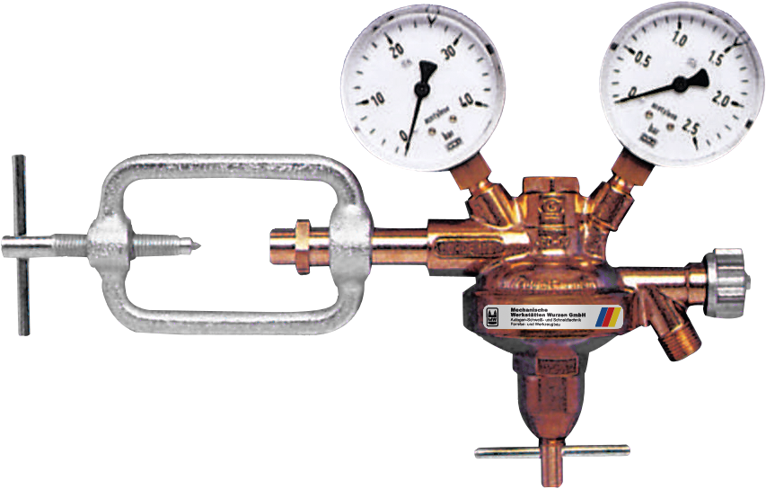 einstufig, mit Sicherheitsmanometer nach DIN EN ISO 5171, Hinterdruck regelbar