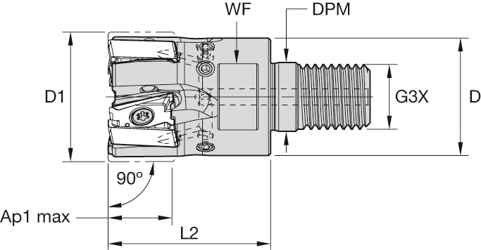 Einschraub-Eckfräser "VSM490" Z4 IK für WSP XN.U 15T6 D32mm
