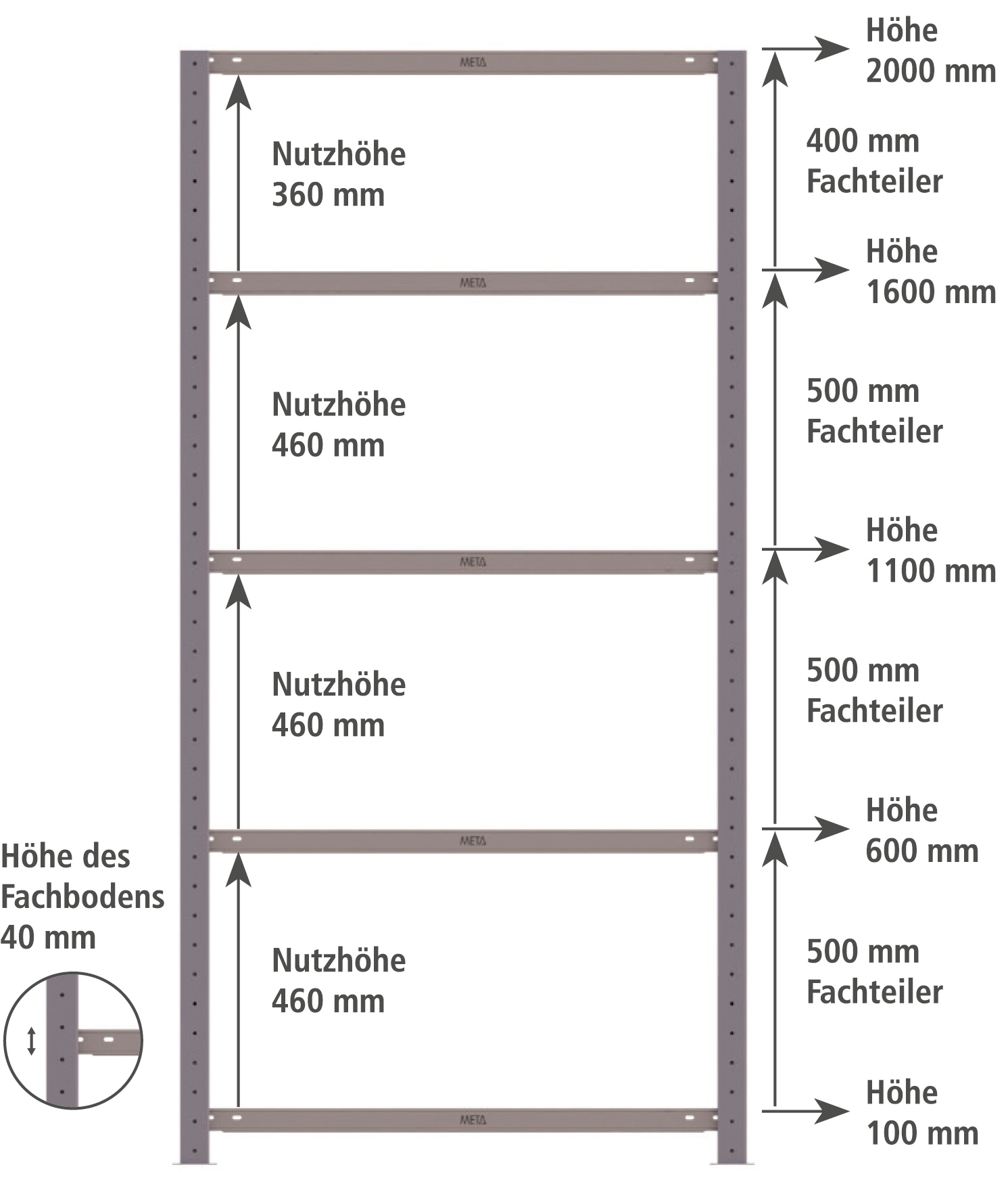 Nutzhöhe = Fachteilerhöhe - 40 mm