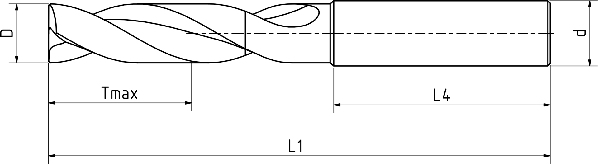 Flachbohrer VHM TiAlN 5xD IK Typ U 180° WN/DIN6535-HA D10,7mm