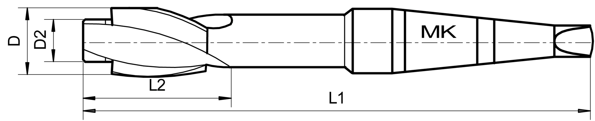 Flachsenker Durchgangsloch HSS fein D33/21mm L190mm MK3 WN Z3 M20