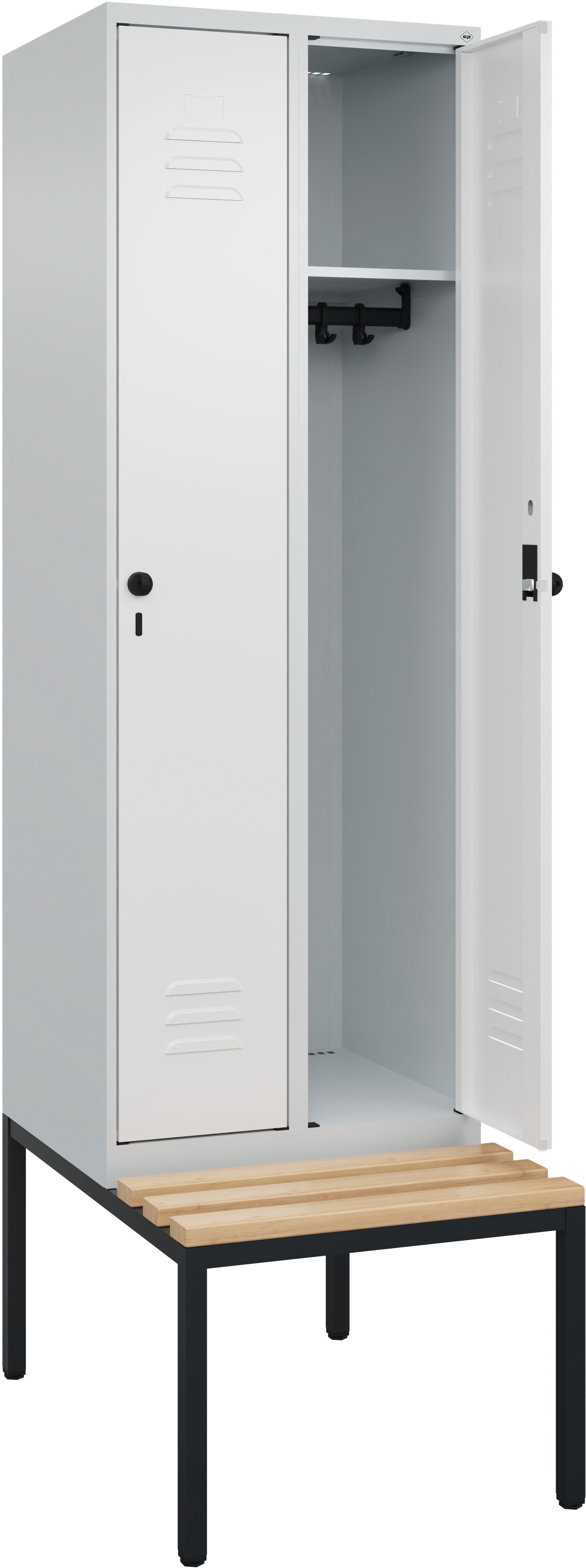 Garderobenschrank Sitzbank 2 Abteile 300mm RAL7035 B600 x H2120 x T500/815mm