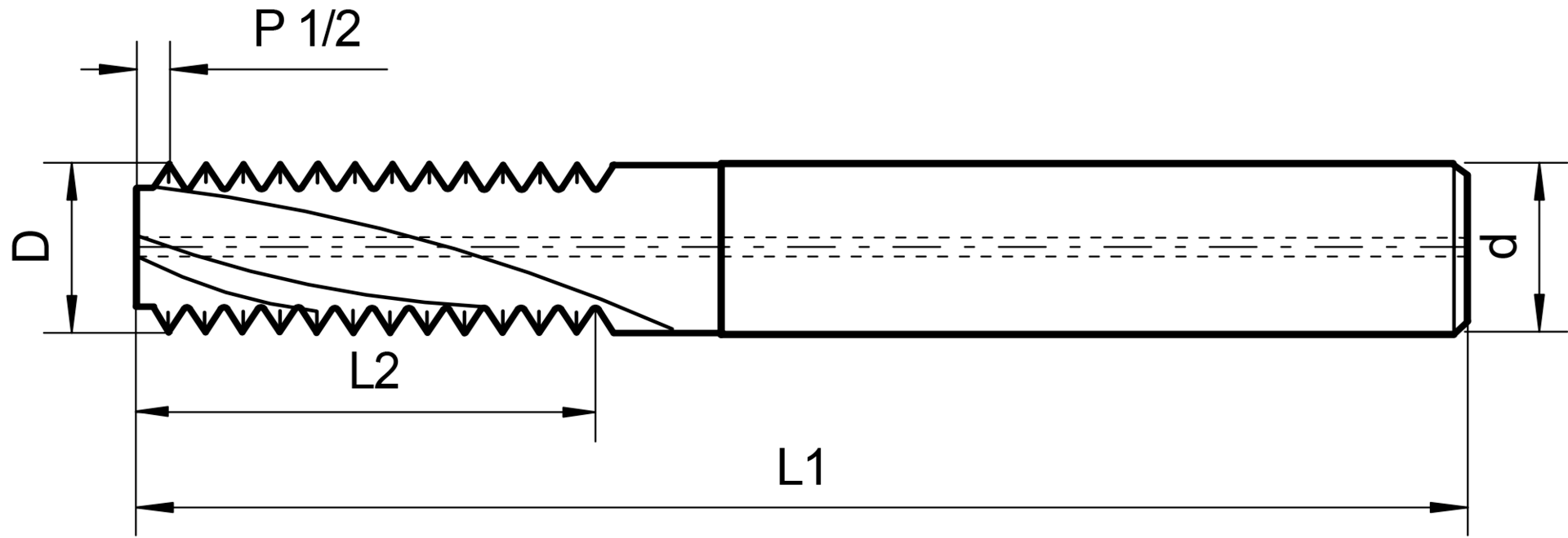 | Einsatz: | bei mittleren und hohen Schnittgeschwindigkeiten für Durchgangsgewinde, für alle Werkstoffe einsetzbar, Links- und Rechtsgewinde innen |