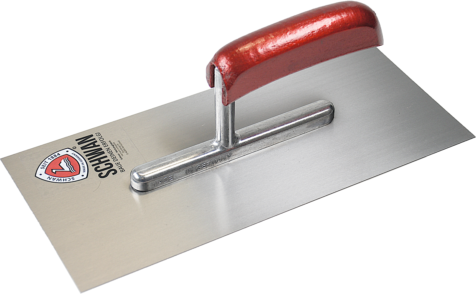 Glättkelle Edelstahl mit gebogenem Holzgriff 280x130mm
