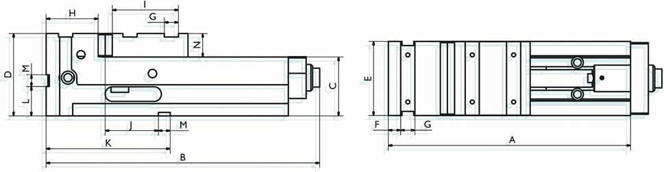 in vier Ebenen aufspannbar: grundseitig, 2 x seitlich und vertikal in Verbindung mit Stirnplatte, alle Seiten parallel und lotgerecht 0,02 mm geschliffen, Wiederholgenauigkeit bei Spannung 0,01 mm, hydraulischer Hochdruckverstärker, Niederzug-Spannsystem, Monoblockkonstruktion, Seitenfenster zur leichteren Reinigung