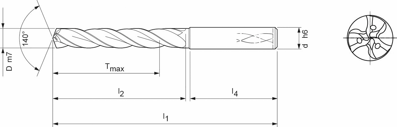 Hochleistungsbohrer VHM EYL+ High-Feed™ 5xD IK WN/DIN6535-HA D4mm