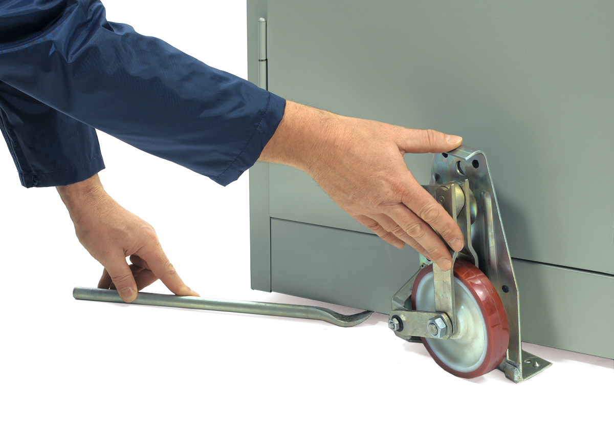 für den Transport von Schränken oder dergleichen, Rad mit PU-Bereifung, Stahlblechgestell mit seitlichem Gummibelag, gesenkte Klauenhöhe 12 mm, gehobene Klauenhöhe 50 mm