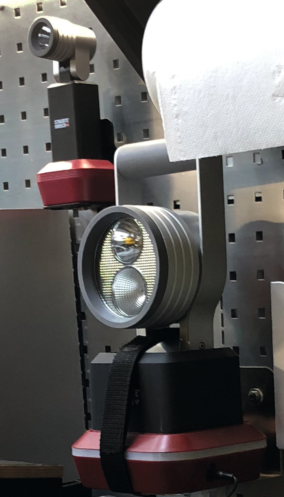 Arbeitslampe mit Li-Ionen-Akku 7,4 V/2,2 Ah, Befestigungsclip aus Metall, Ladeschale und Ladekabel 230 V und 12/24 V