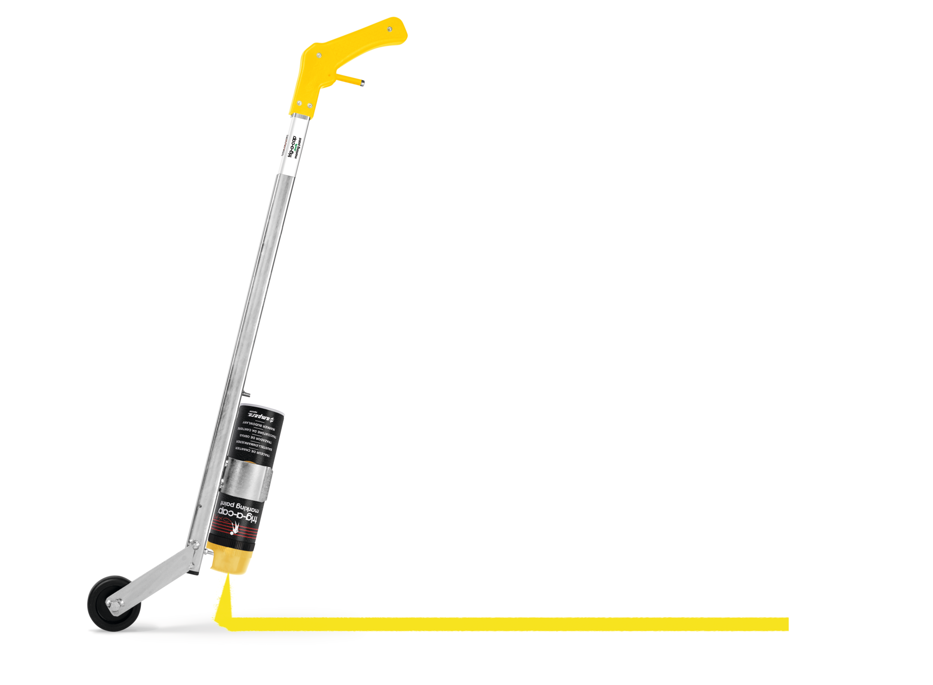 bequemes Markieren dank handlicher und stabiler Ausführung, Betätigung des Sprühventils erfolgt über den Hebel am Handgriff, zur problemlosen Dauerbenutzung ohne Bücken, flexibel einsetzbar - für individuelle Markierungen (Punkt- oder kurze Strichmarkierungen), Rad abmontierbar