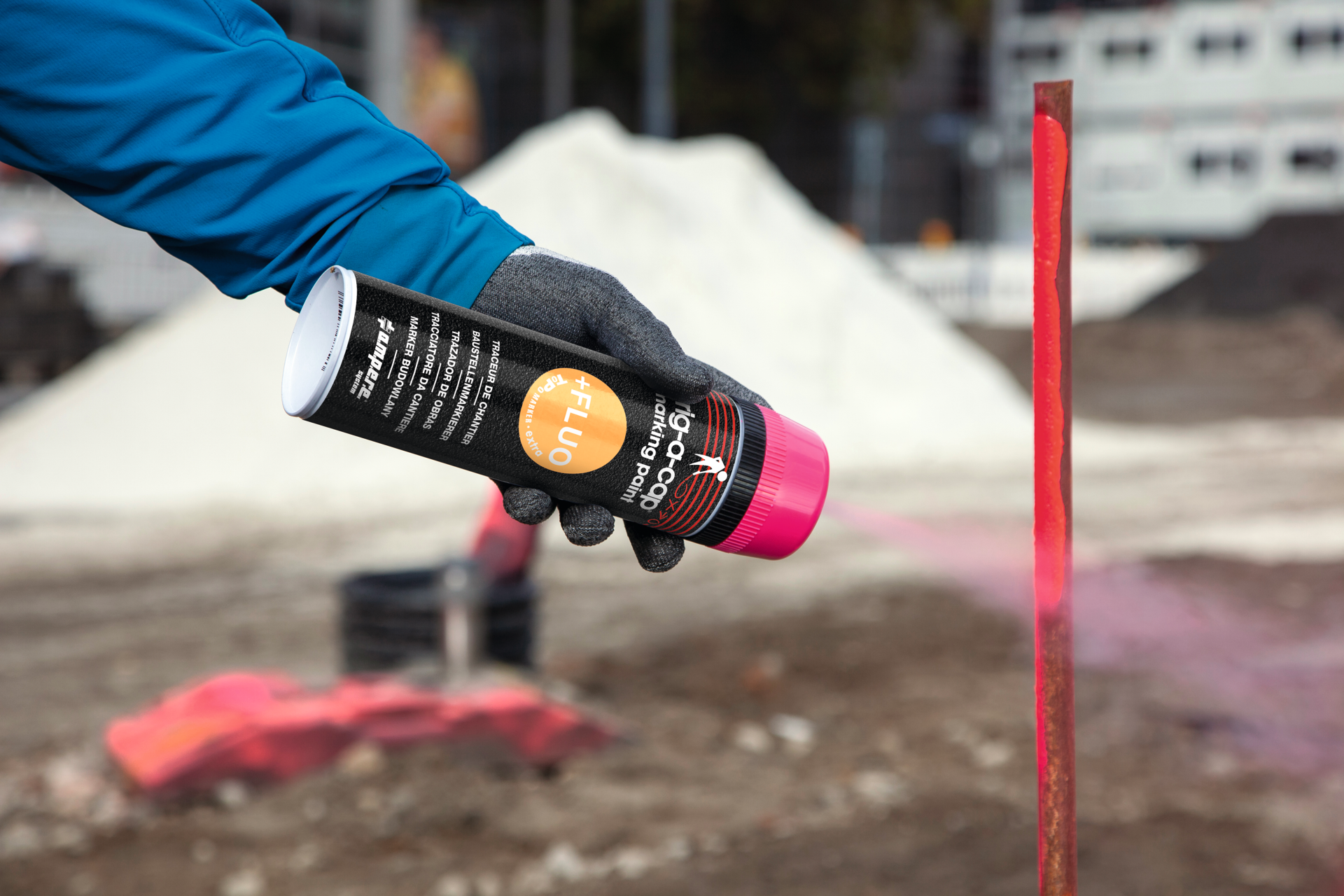 auf Lösemittelbasis, hohe Deckkraft, abriebfest, wetterbeständig, schnell trocknend, frei von Blei und Cadmium, ergonomisch geformte Schutzkappe, verhindert versehentliches Austreten der Farbe, lange sichtbare Markierung durch Spezial-Farbkonzept