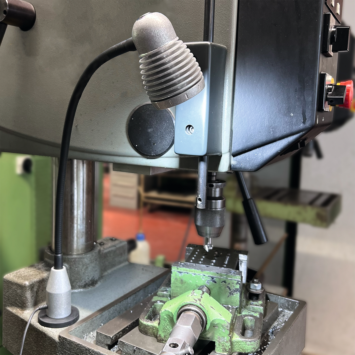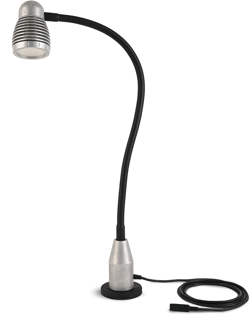 dimmbar, flexibler Leuchtenarm, Hochleistungs-LED im Aluminium-Gehäuse, gummiummantelter Magnetfuß, Leuchtenkopf 90° abgewinkelt, breiter Abstrahlwinkel 90°, blend- und flackerfrei, reflexionsarm, flexible Anbringung an Maschine oder Arbeitsplatz