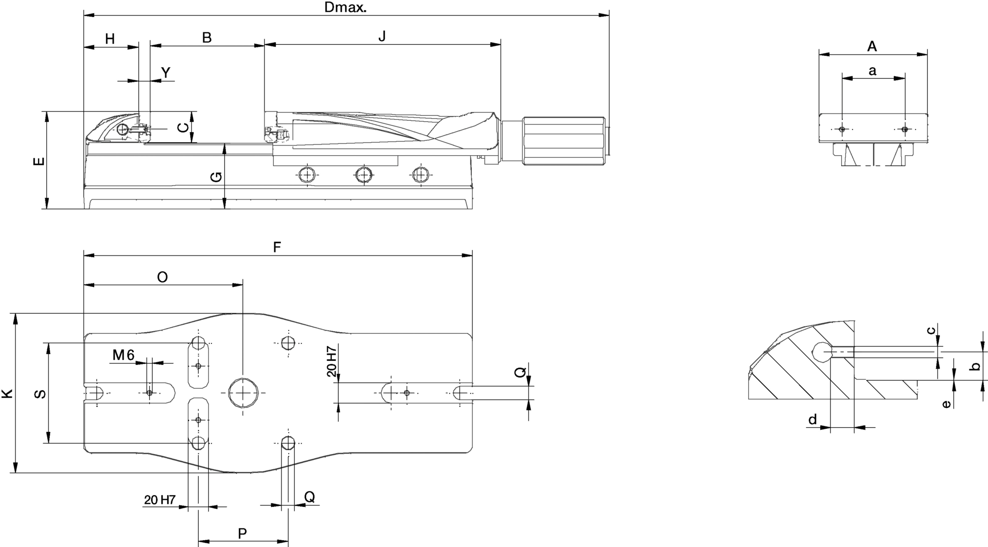 mit stufenweiser Spannkraftvoreinstellung für sensibles Spannen auch ohne Kraftverstärkung möglich, hohe Genauigkeit und Verschleißfestigkeit durch präzise gehärtete Backenführung, Bolzensystem für schnelle Spannbereichsverstellung, Grundfläche mit Längsnuten 20H7, gekapselte Spindel gegen Verschmutzung sowie für optimalen Kühlmittel- und Späneabfluss durch abgerundetes Design