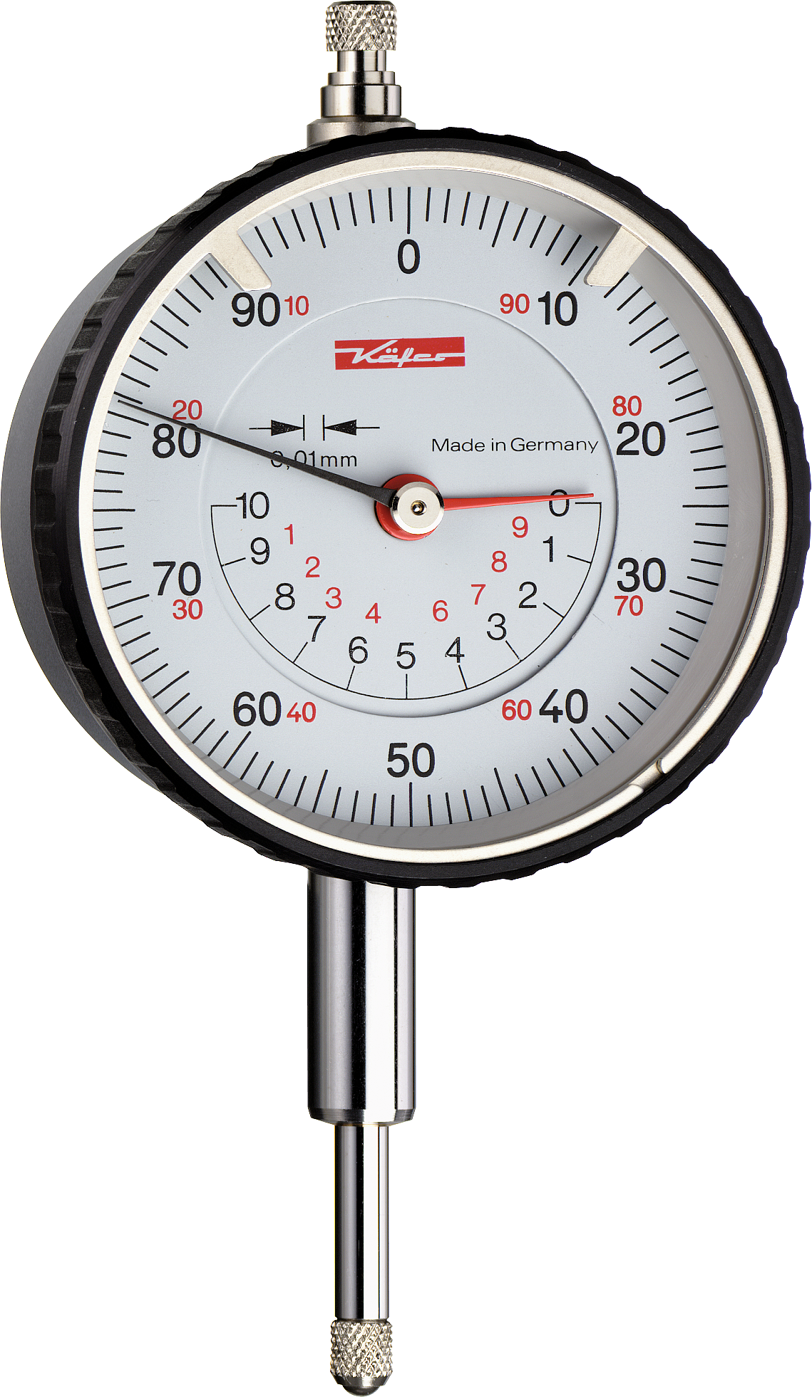 äußerst präzise und gleichzeitig robuste Ausführung, hohe Zuverlässigkeit, hohe Genauigkeit, lange Lebensdauer, drehbarer Kunststoffring zur Nullstellung der Skala, zwei Toleranzmarken, Umdrehungszähler, geläppter Messbolzen, Übersetzungsverhältnis 1 mm pro Zeigerumdrehung, mit konzentrischer Ablesung, Einspannschaftdurchmesser 8h6