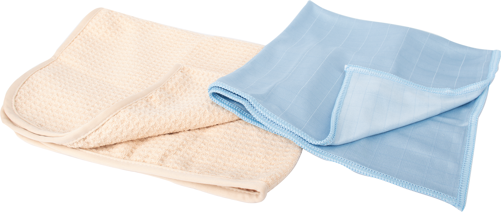 mit Waffel-Mikrofasertuch und Glas-Mikrofasertuch (seidenartig), saugstark, fussel- und silikonfrei, waschbar bis 60° C, rückstandslose Reinigung, streifen- und schlierenfrei