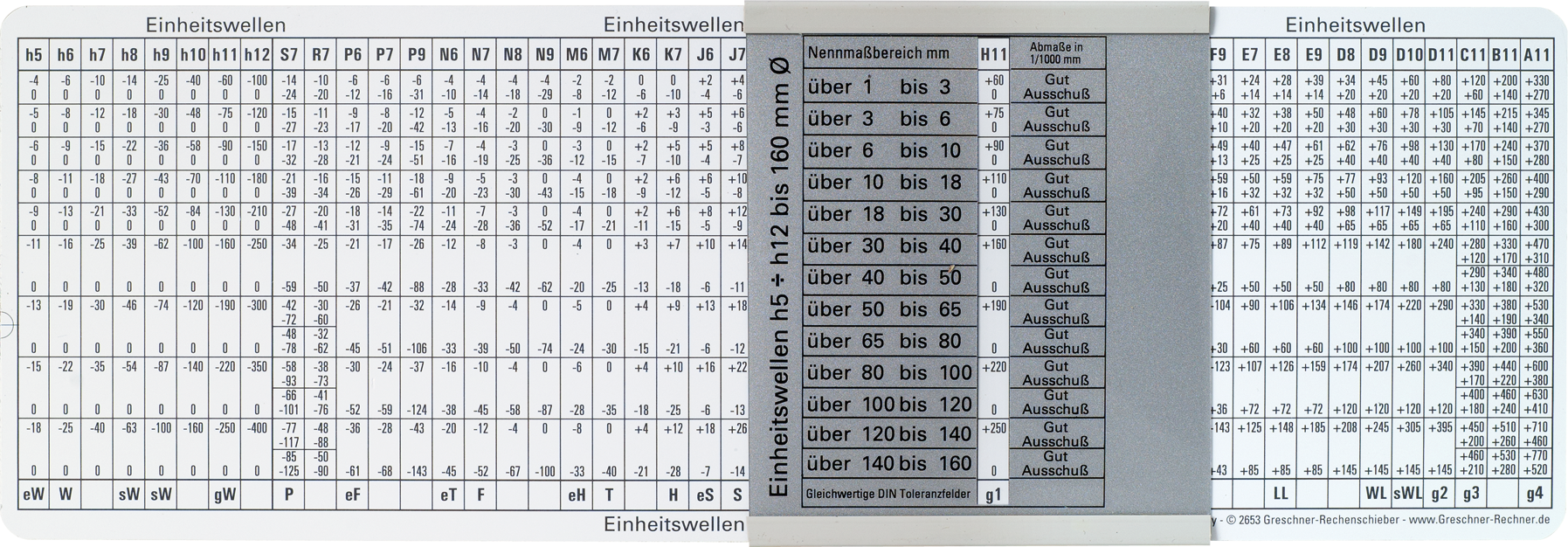 Vorderseite: Passung h5-h12 bis Ø 160 mm, Rückseite: Passung H6-H13 bis Ø 160 mm