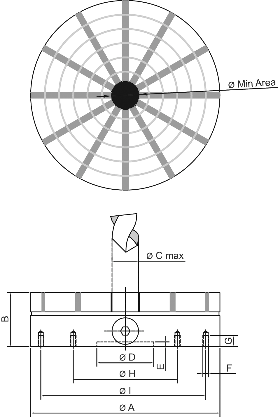 mittlere Bauhöhe bei sehr hoher Haltekraft, flüssigkeitsdicht, mechanisch EIN/AUS-schaltbar, das Zentrum ist nicht magnetisch und kann bis max. Maß "C" durchgebohrt werden, Werkstücke können spannungsfrei und schnell gespannt werden, Rundum- Bearbeitung, zentrische Durchgangsbohrung kann eingearbeitet werden, geringe Eindringtiefe der Magnetkraft (ca.10 mm), da flaches Magnetfeld