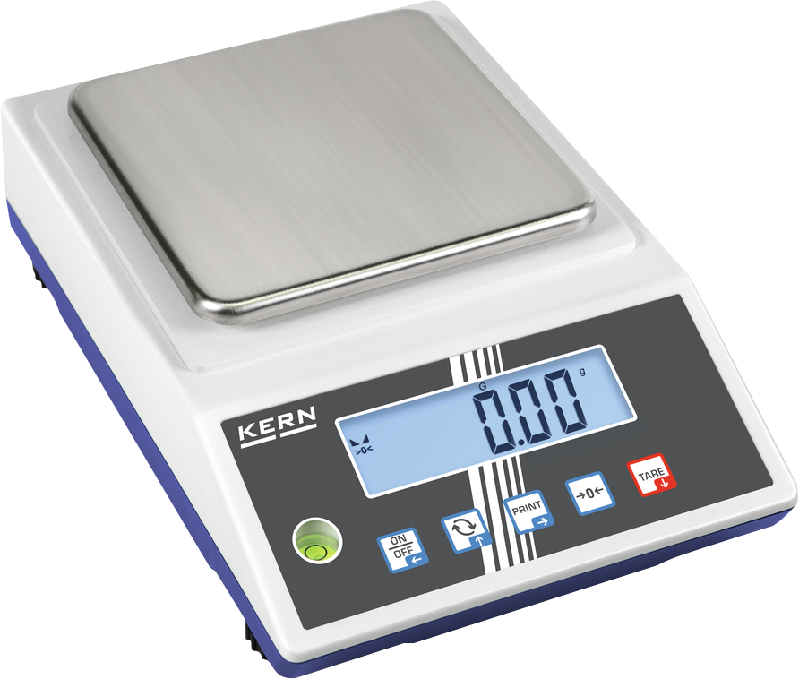 Wägeeinheit: frei programmierbar, z.B. Anzeige direkt in Fadenlänge g/m, Papiergewicht g/m² o. ä., EIN/AUS, CAL extern, UNIT, MOVE, TARE, PRE-TARE, PCS, REZ, PERCENT, GLP/ISO, Auto-Off