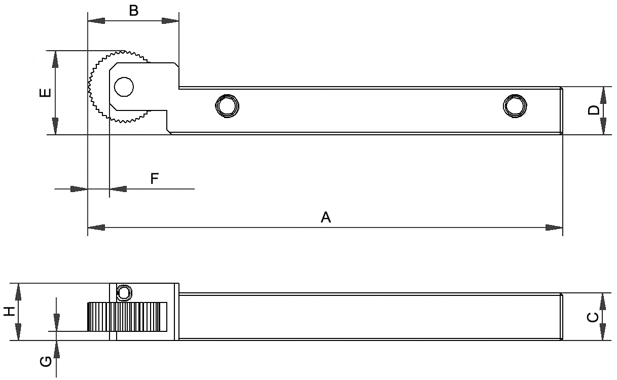 Rändelhalter H20xB20xL119,5mm 8-200mm für Rändelrad 20x8x6mm