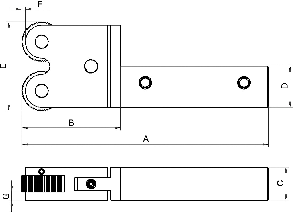 Rändelhalter H25xB20xL139,5mm 8-200mm für Rändelrad 20x8x6mm