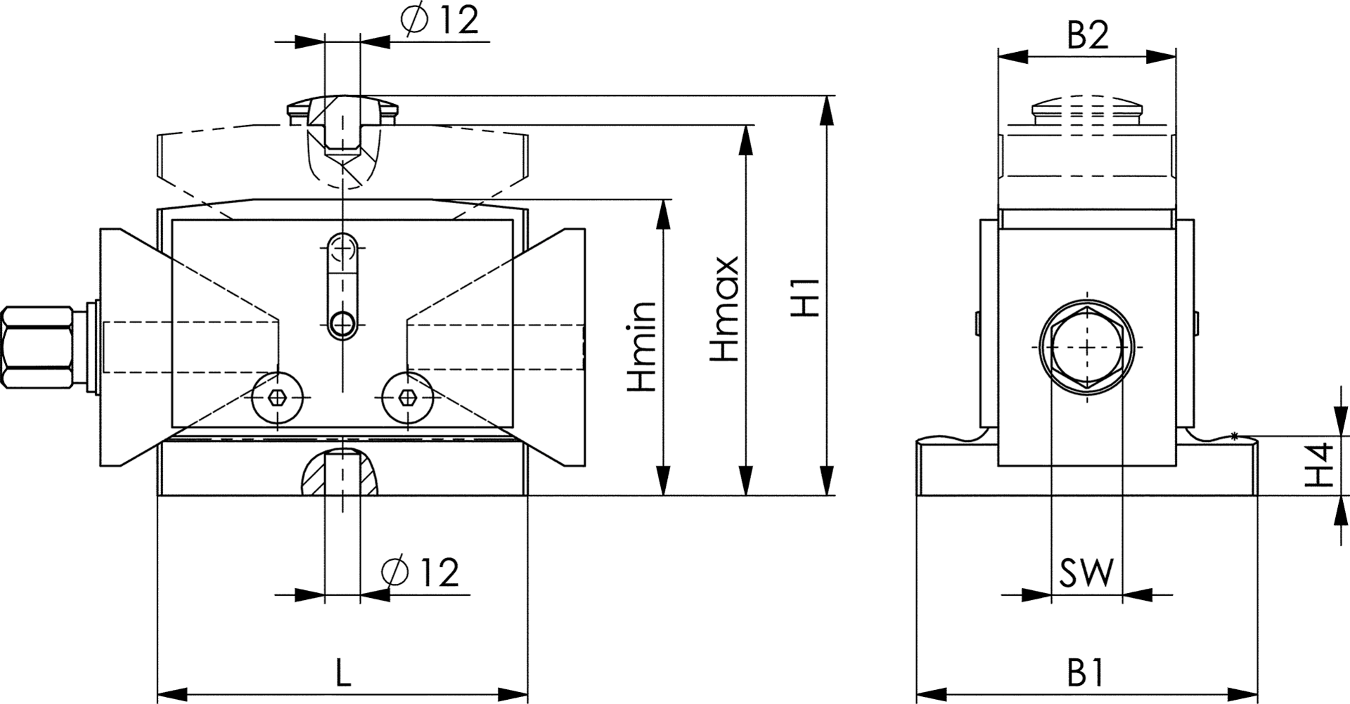 | Position | Code | Größe | L (mm) | Spannkraft (kN) | H1 (mm) | H (mm) | SW (mm) | Verstellweg (mm/U) | B2 (mm) | B1 (mm) | H4 (mm) | Anzahl | VE | Preis/VE | |||
