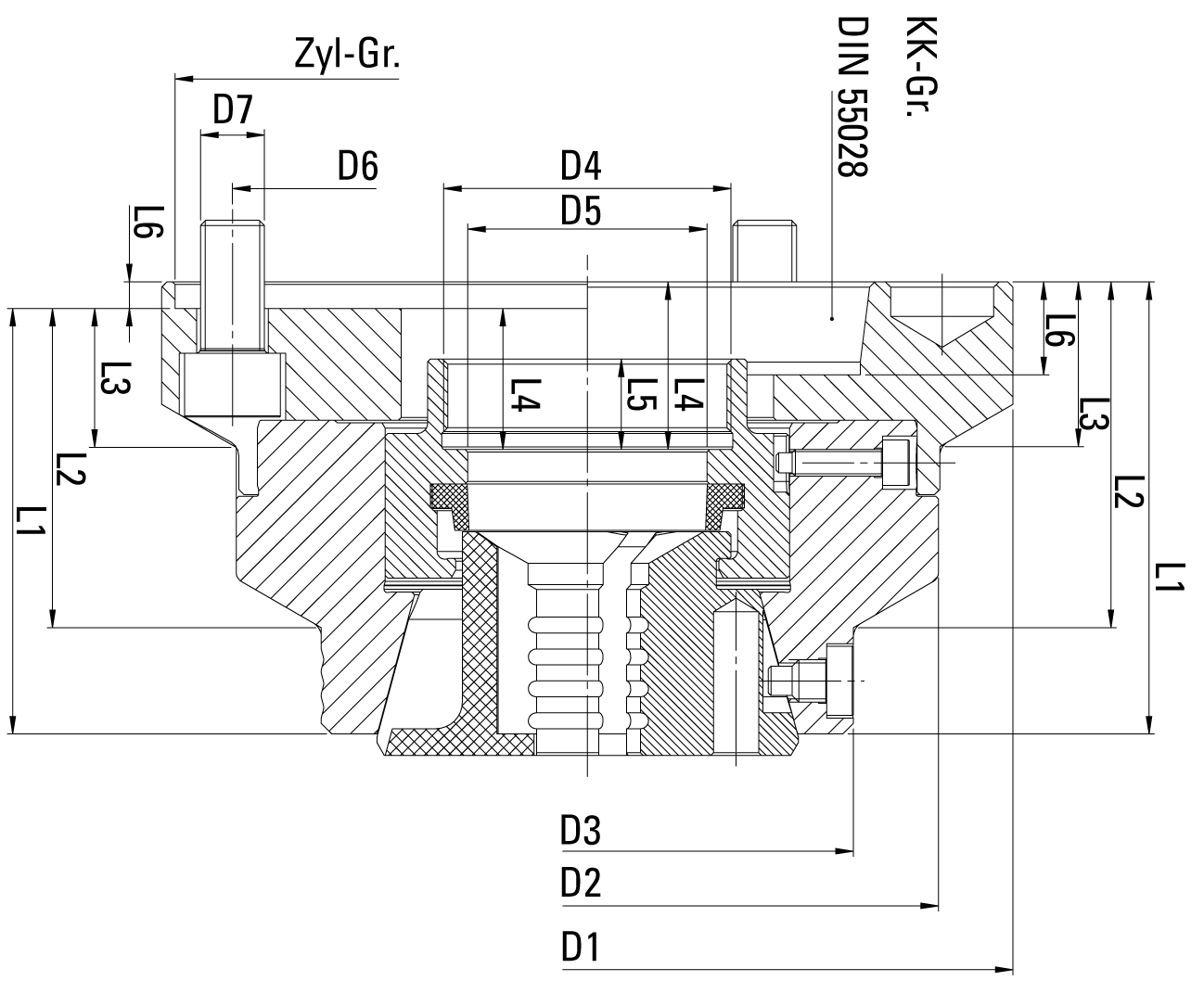 | Position | Code | Größe | D3 (mm) | D6 (mm) | max. Drehzahl (U/min) | L1 (mm) | D5 (mm) | Gewinde | L4 (mm) | L6 (mm) | L5 (mm) | D1 (mm) | L2 (mm) | Schraubengröße | D2 (mm) | L3 (mm) | Anzahl | VE | Preis/VE | |||