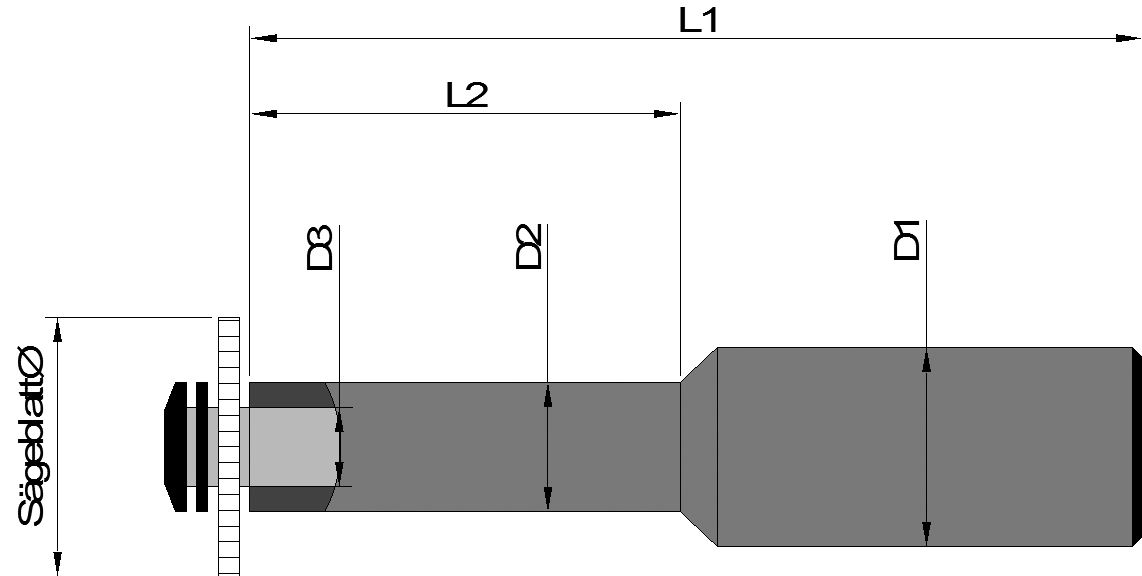 | Position | Code | D1 (mm) | Sägeblattdurchmesser (mm) | D3 (mm) | L1 (mm) | D2 (mm) | L2 (mm) | Anzahl | VE | Preis/VE | |||