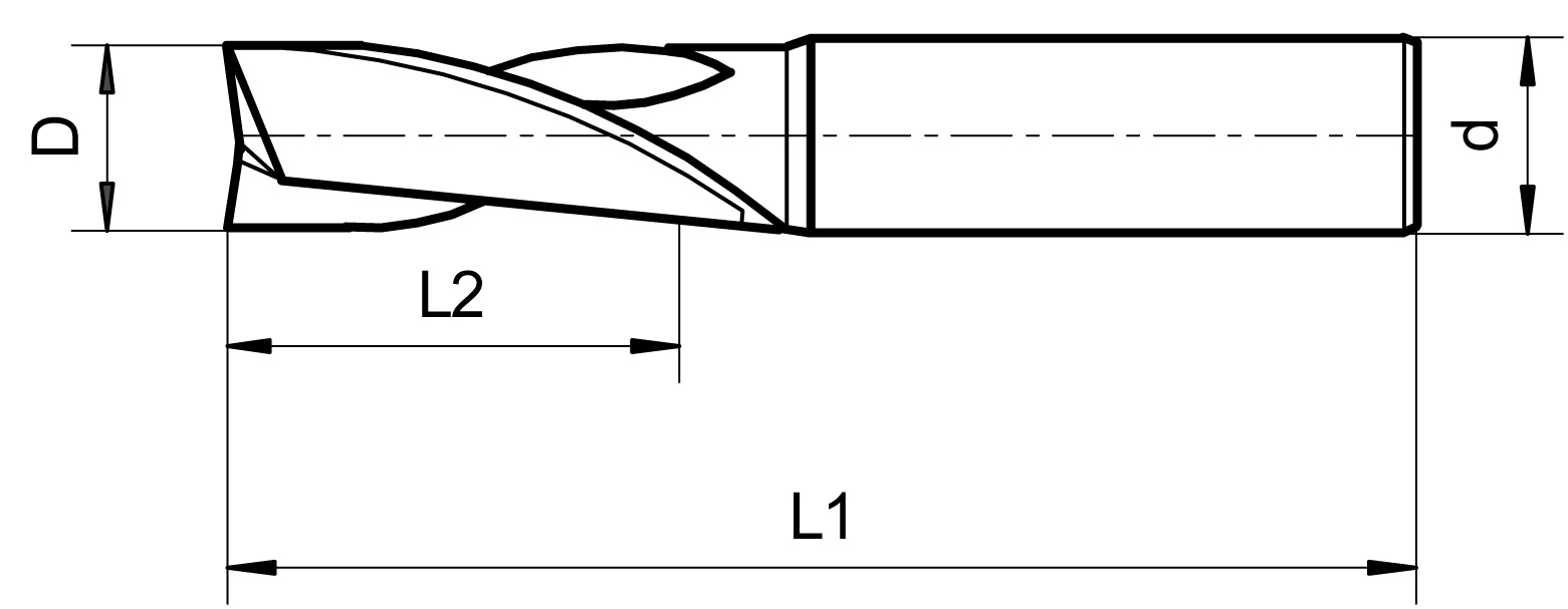 Schaftfräser VHM Z2 Typ W WN/DIN6535-HB D6mm