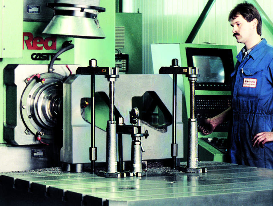 Zentrierbohrung Ø 12 mm, Spindel komplett aus Vergütungsstahl, mit Trapezgewinde, Spindelkopf, brüniert, Grundkörper aus Grauguss, lackiert