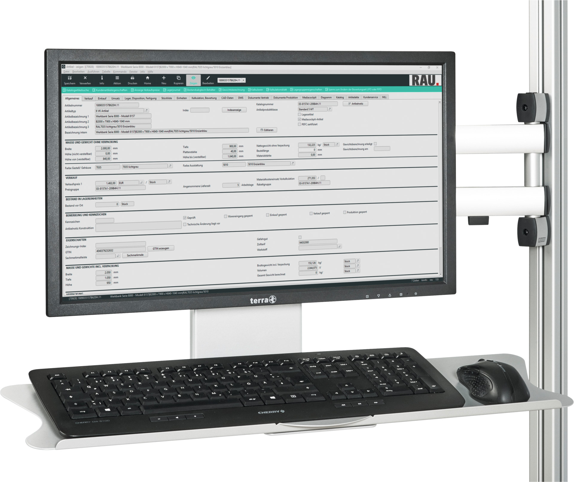 neigbare Aufnahmeplatte, Schwenkarm mit 3 Gelenken, die Einbauhöhe ist stufenlos wählbar, einfaches Abnehmen des Monitors dank QuickRelease, Kabelführung durch Kabelhalter