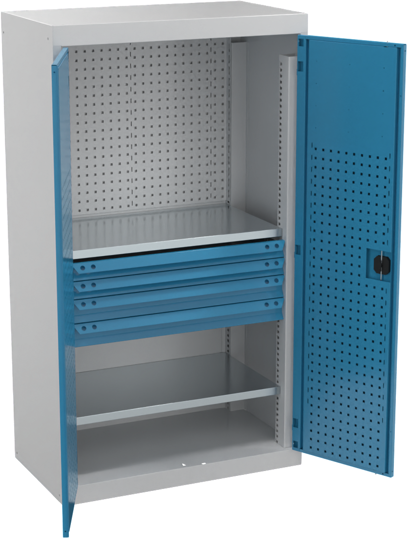 92246 | 4 Schubladen, 2 Einlegeböden, Lochwände an den Türen und der Rückwand | 1950 | 75/75/100/100 | 1 Stück |