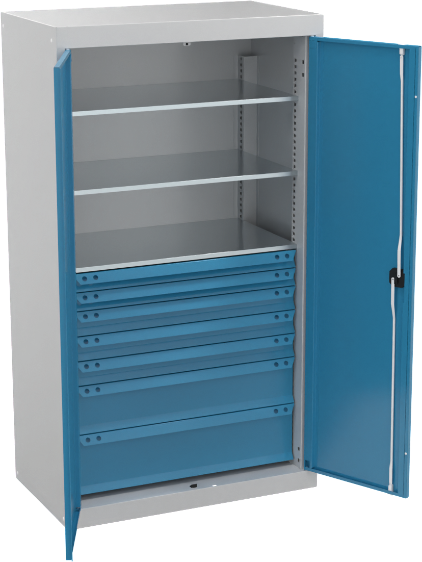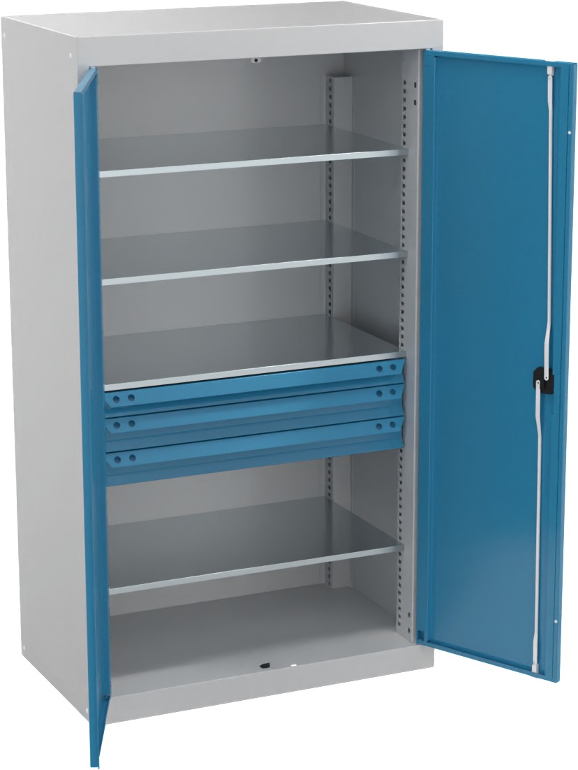 Schwerlastschrank B4 Korpus RAL7035 Front RAL5012 B1100 x H1950 x T620mm