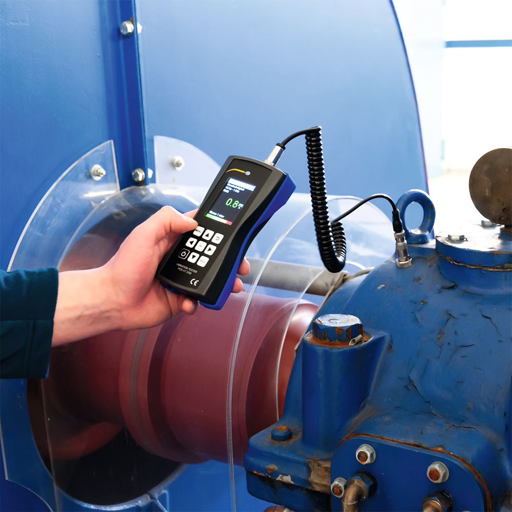 Messgerät gibt die Schwingbeschleunigung, Schwinggeschwindigkeit und Schwingweg direkt am farbigen Display an, schnell und sicher Unwucht und sich entwickelnde Lagerschäden detektieren und verfolgen, Modus für die Messung nach ISO 10816-3, automatische Anzeige der Gut-Schlecht-Bewertung im Display