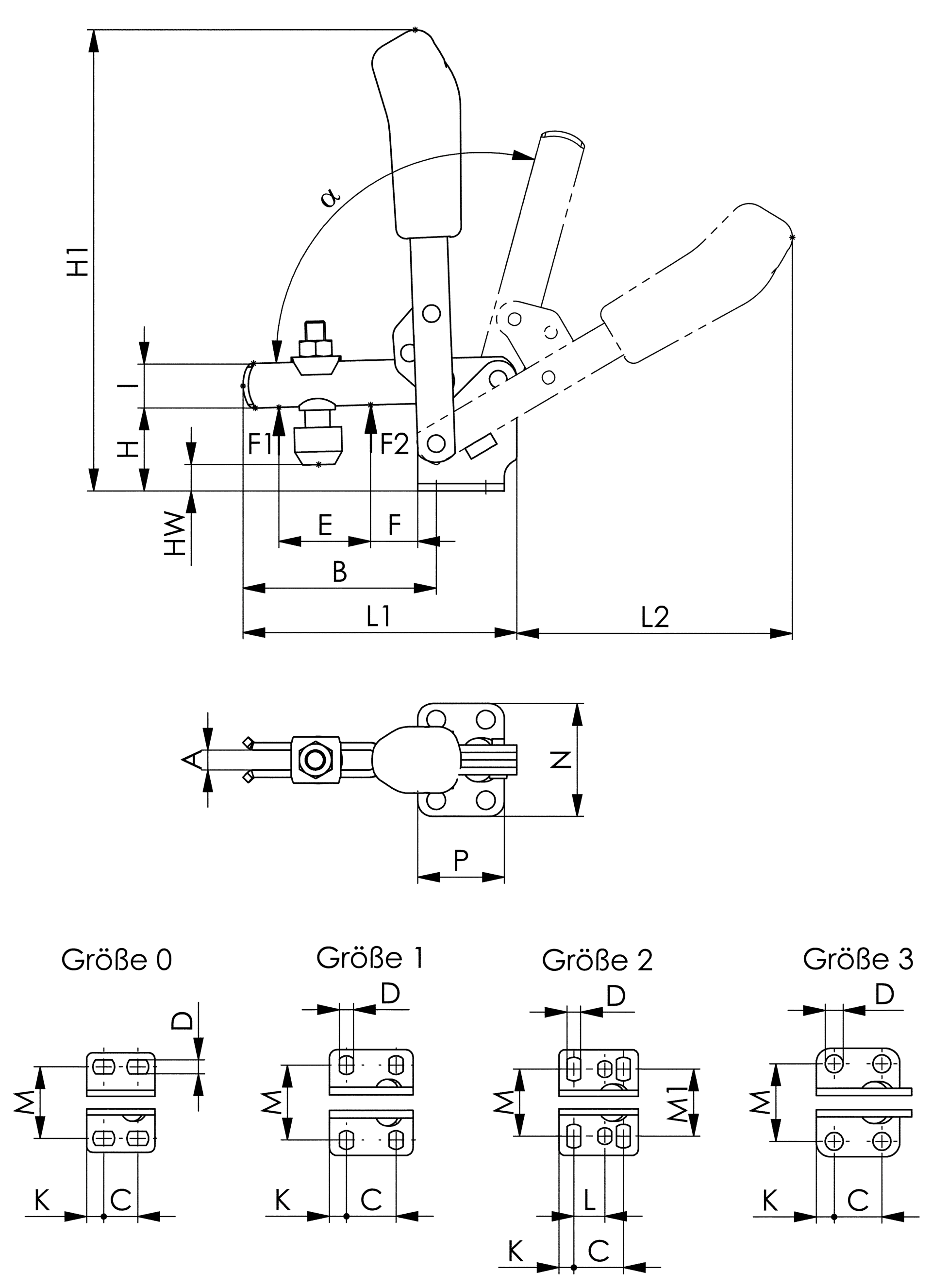 Senkrechtspanner ESD mit waagerechtem Fuß Gr. 3