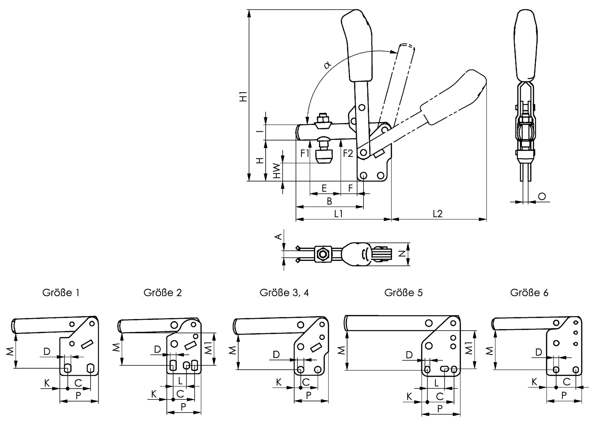 Senkrechtspanner senkrechter Fuß offener Haltearm Gr. 2