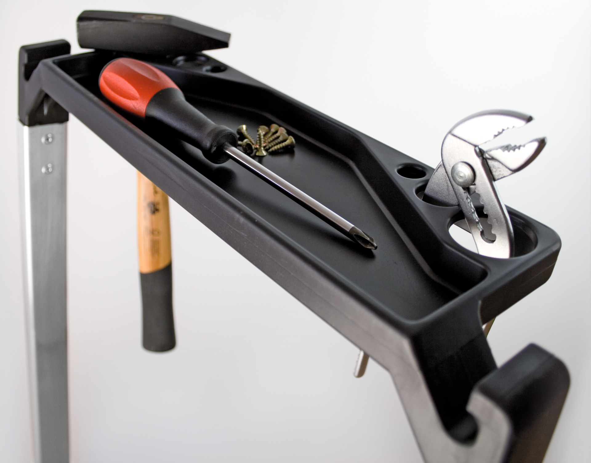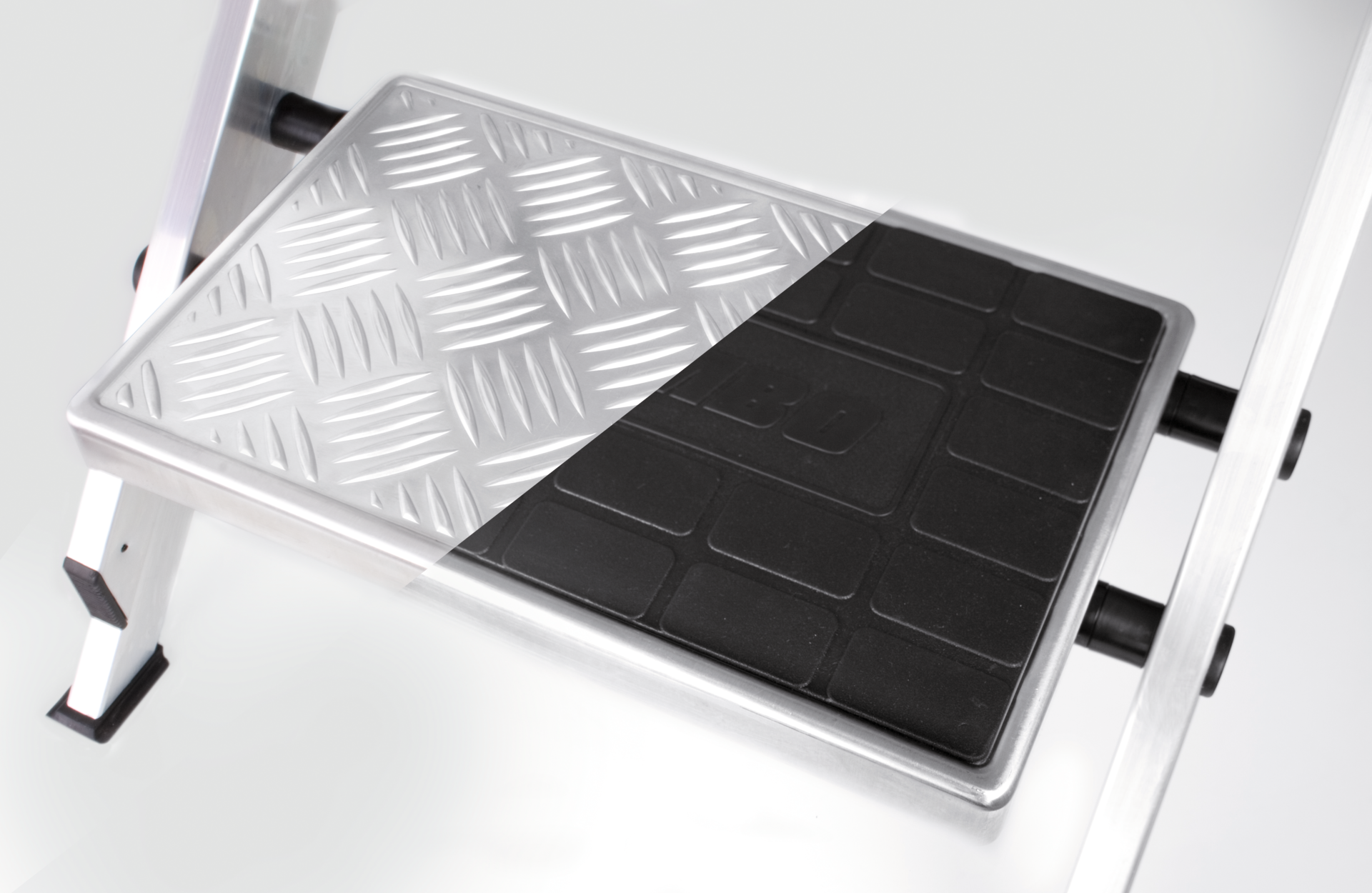 rutschsichere Trittstufen mit Gummibelag, Ablageschale, Holme aus Aluminium-Strangpressprofilen