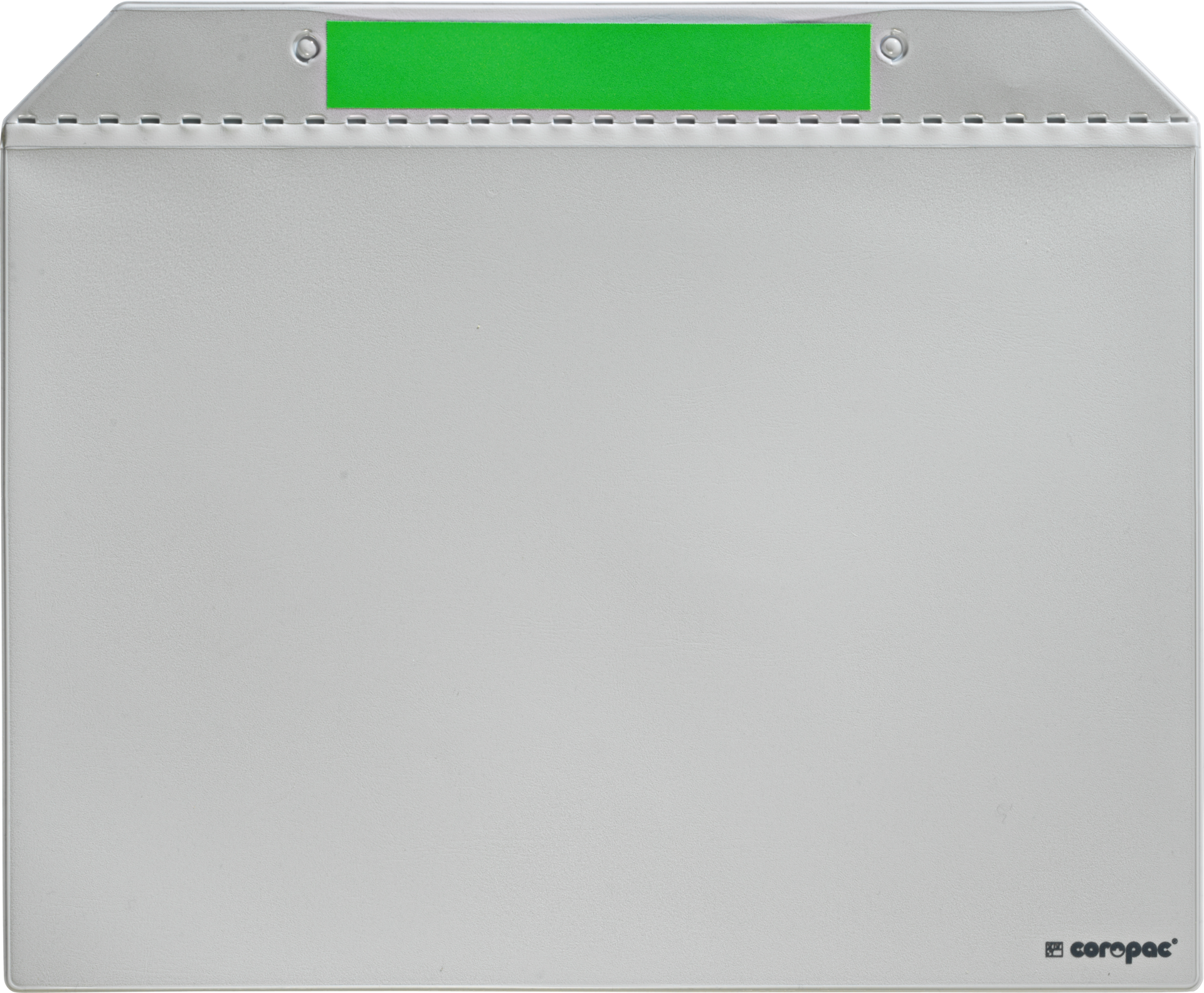 mit Magnetband, oben offen, flexibel, die Vorderseite ist mit einer scannerlesbaren Transparentfolie ausgestattet