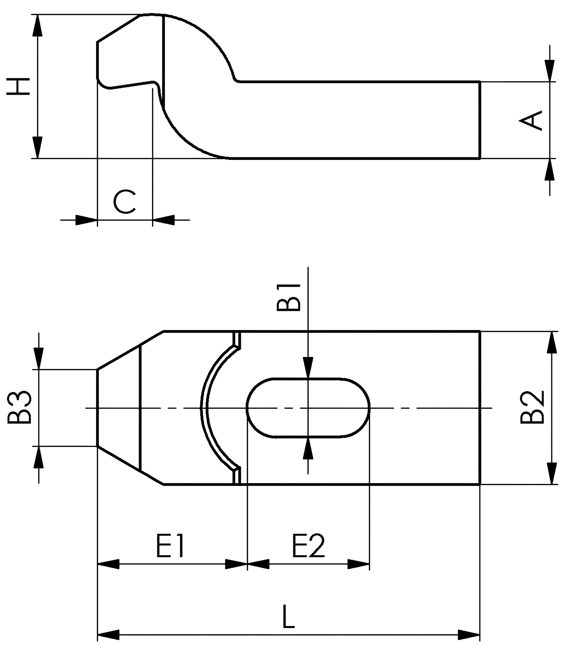 | Position | Code | B2 (mm) | B3 (mm) | B1 (mm) | A (mm) | L (mm) | E2 (mm) | Passend zu | E1 (mm) | H (mm) | C (mm) | Anzahl | VE | Preis/VE | |||