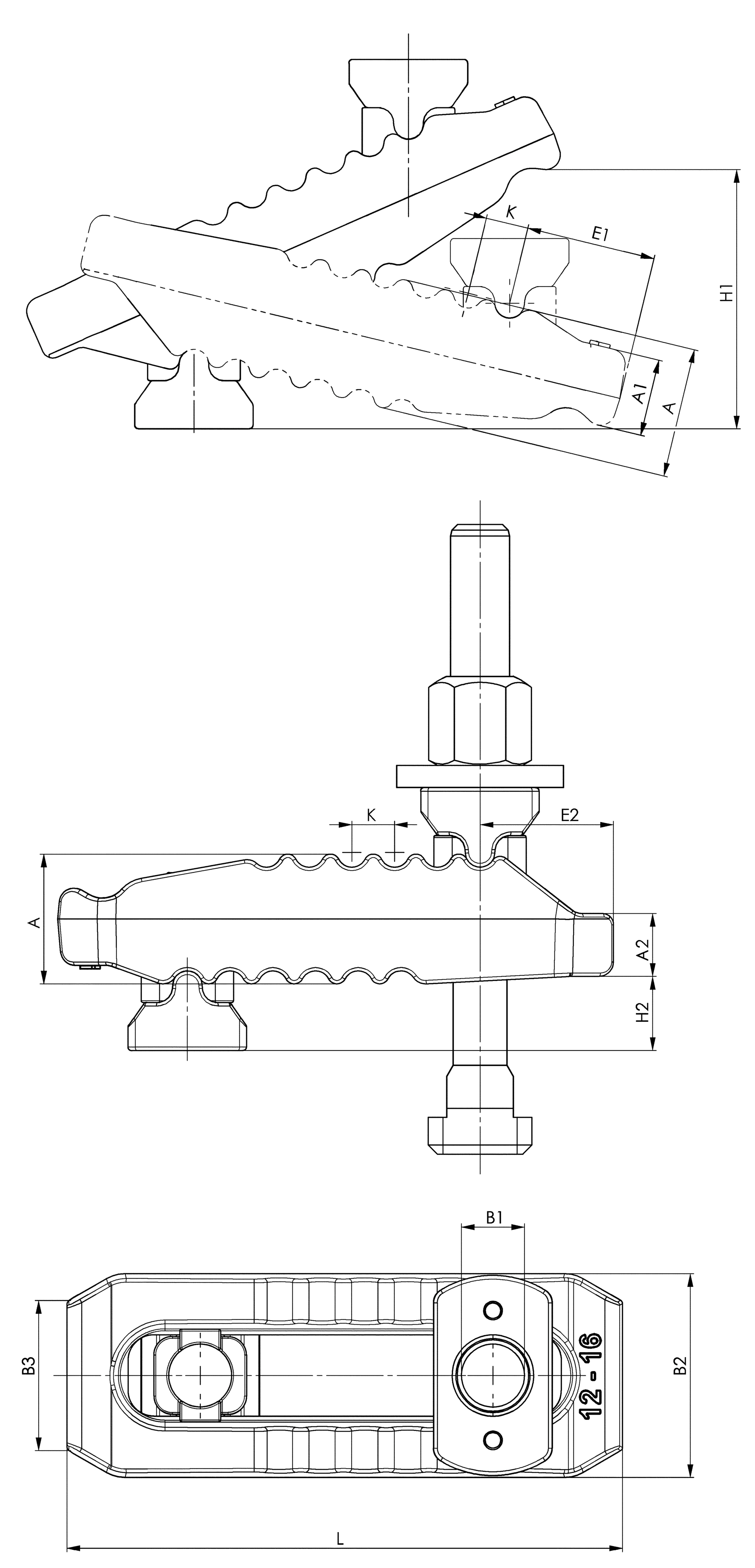 Spannpratze stufenlos verstellbar und Gegenhalter "Krokodil" Nut18mm M16x18x160mm H0-70mm D17mm