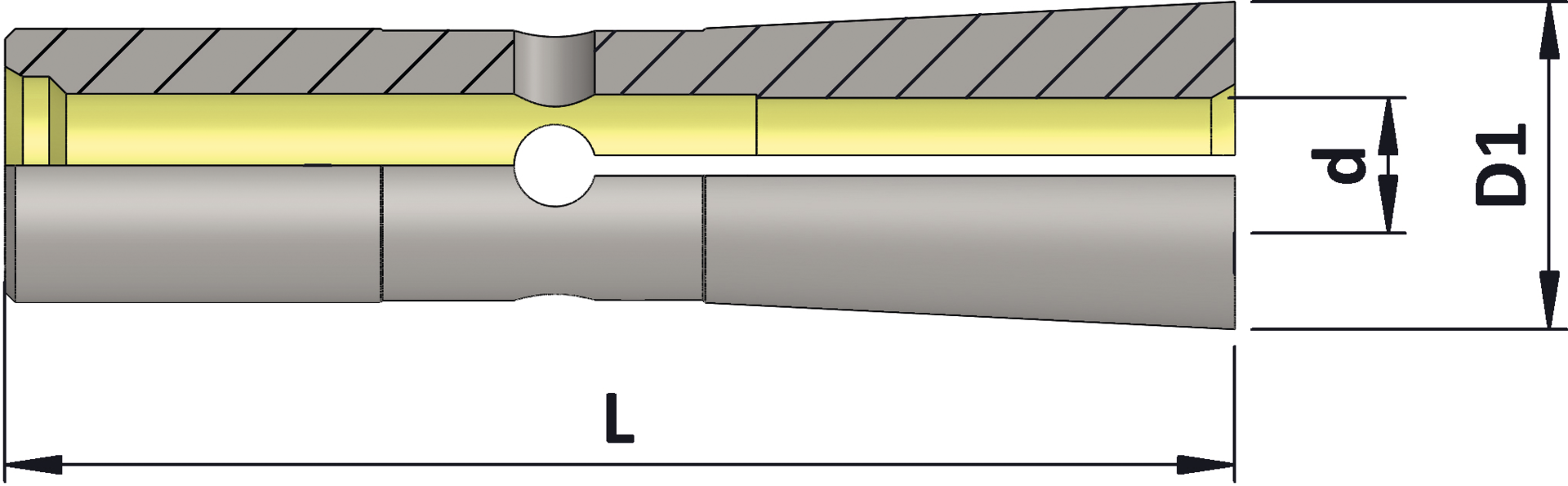 | Einsatz: | für Spannzangenfutter extraschlank System DMC (Art.-Nr. 233913... und 23648...), zur Aufnahme von Werkzeugen mit Zylinderschaft |
